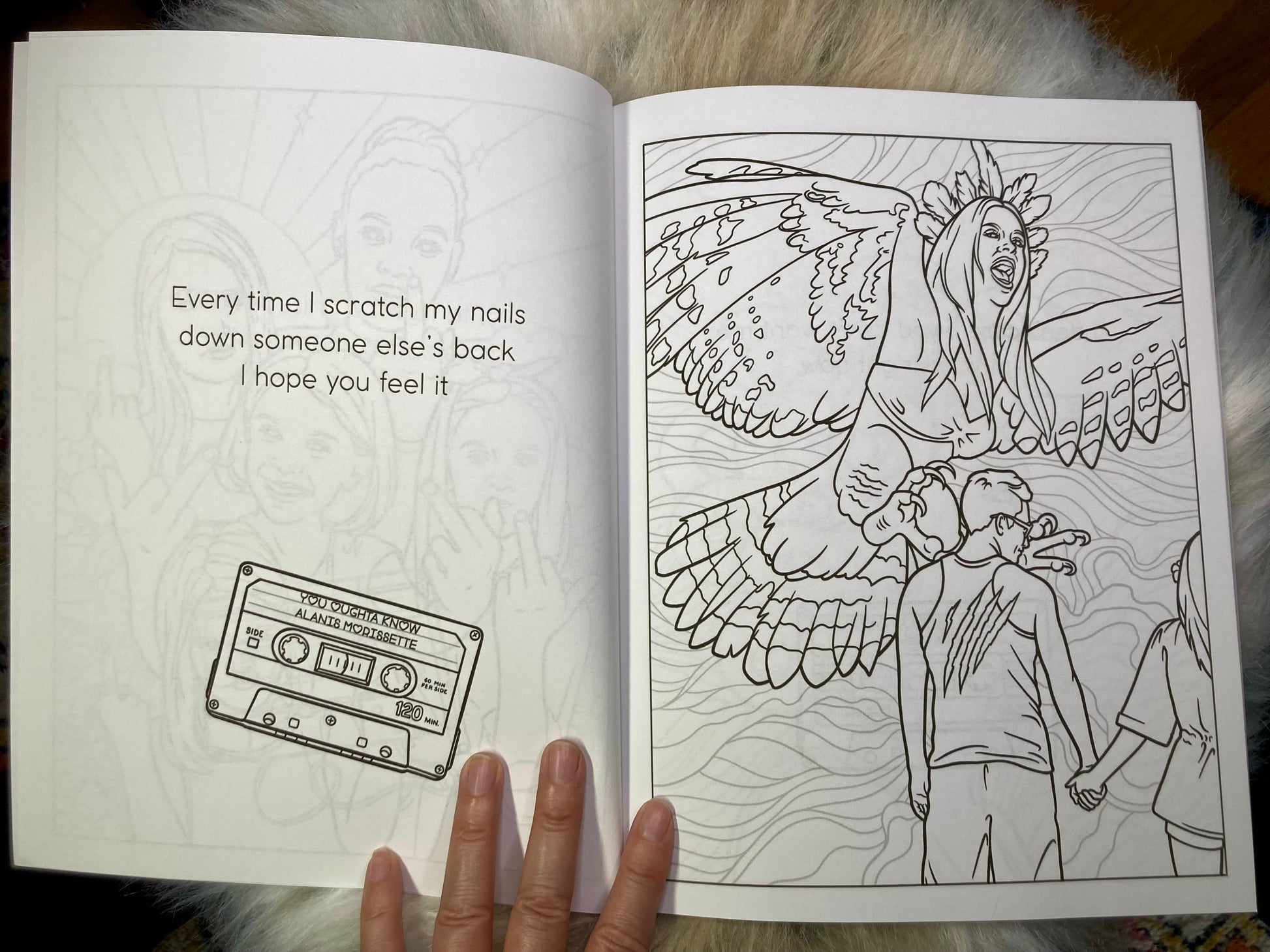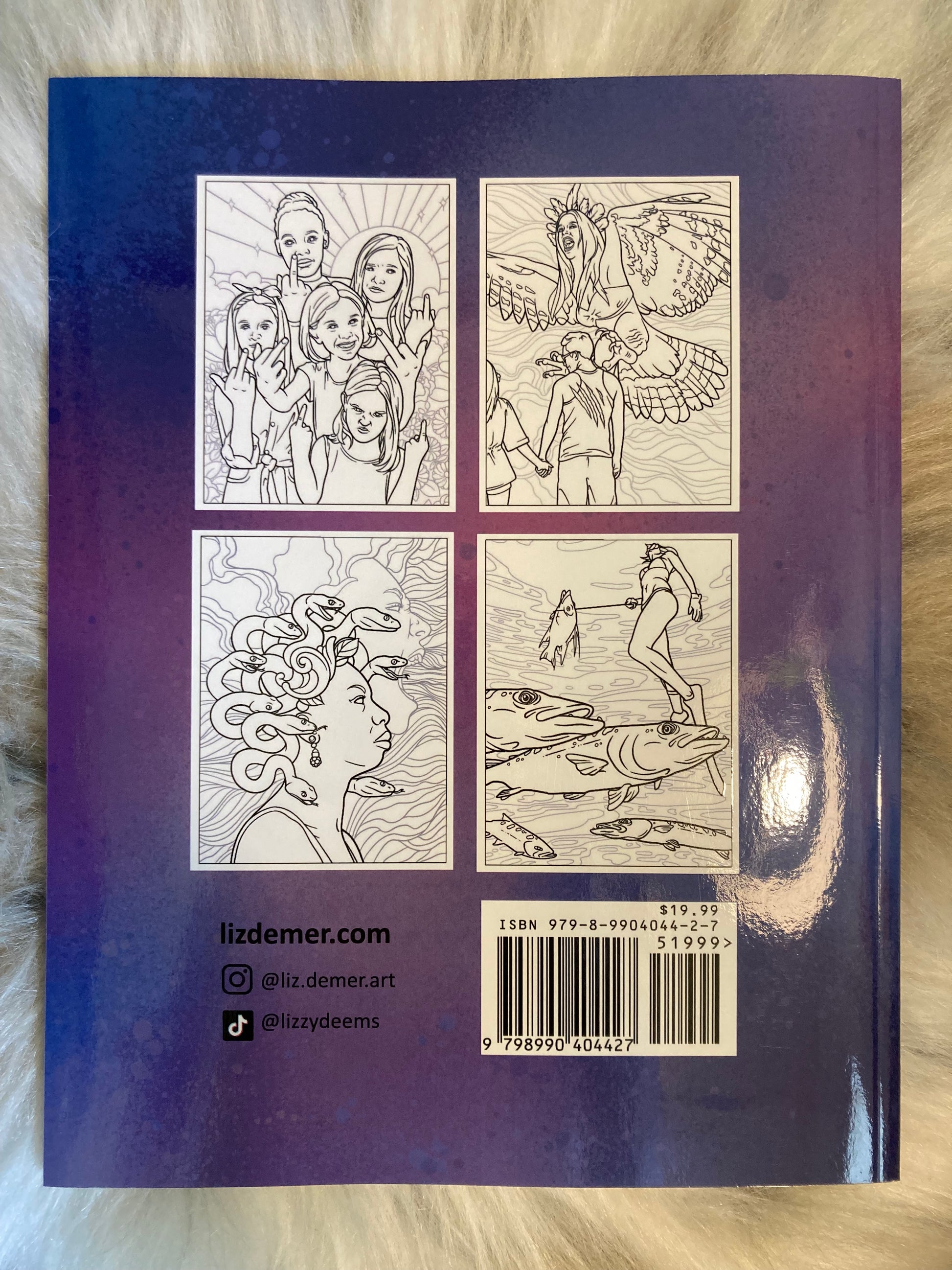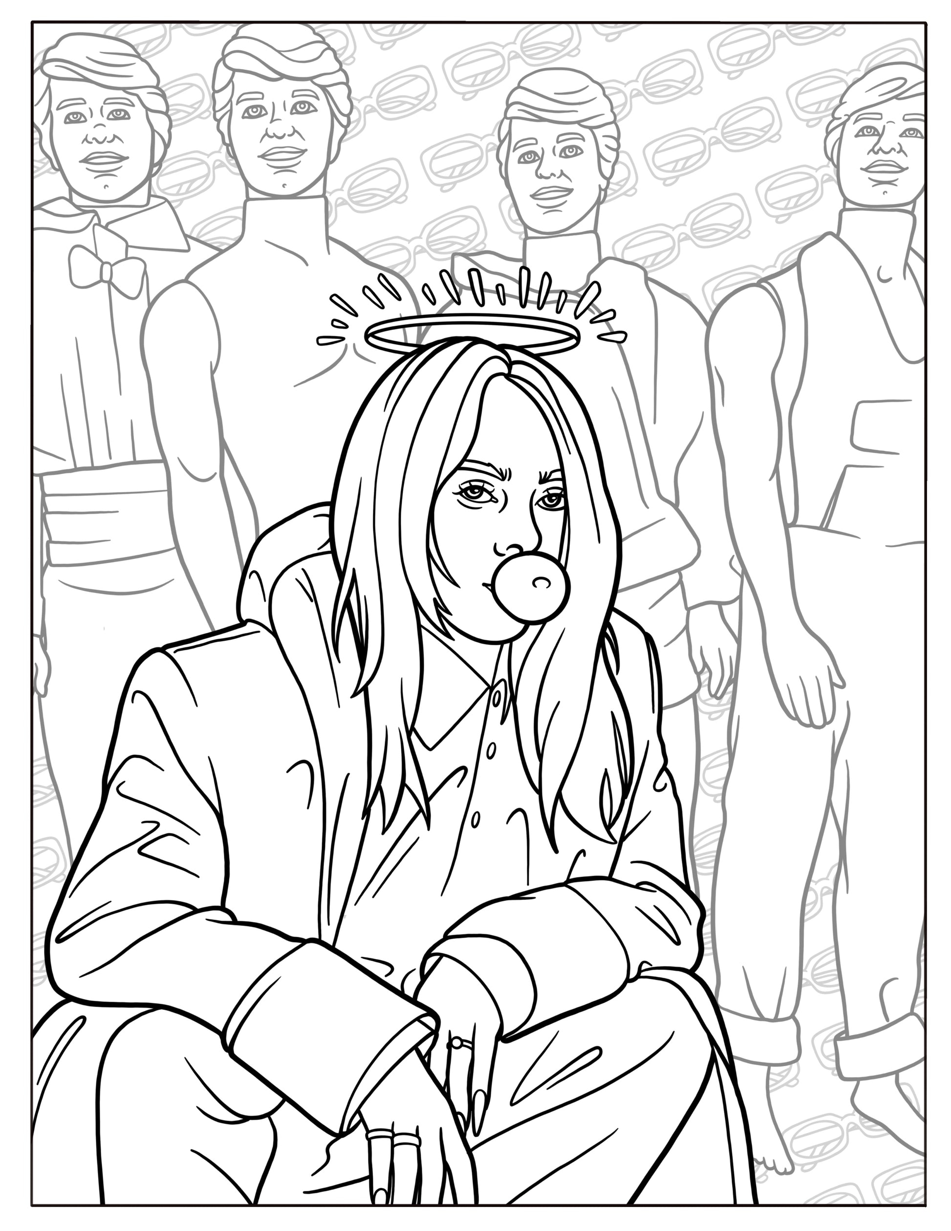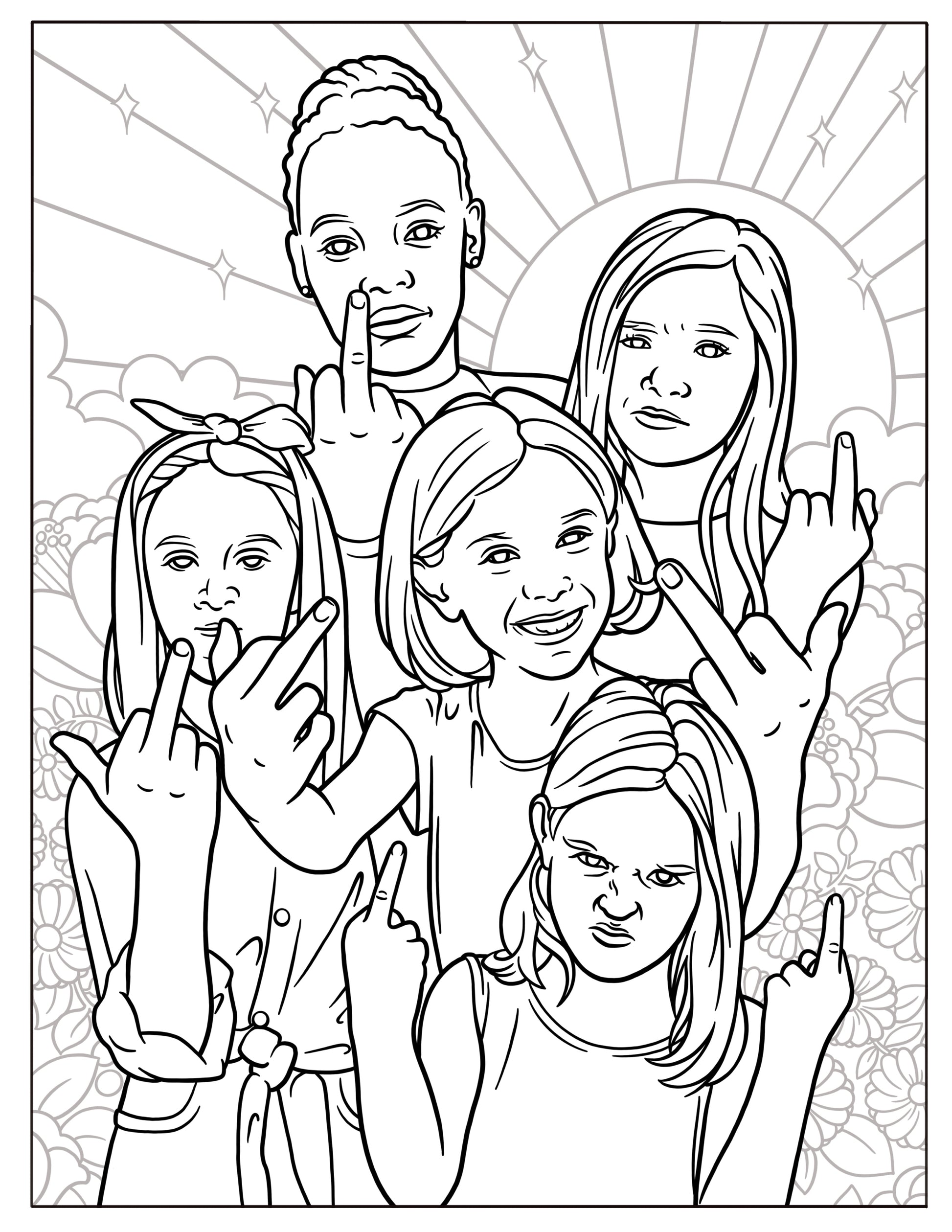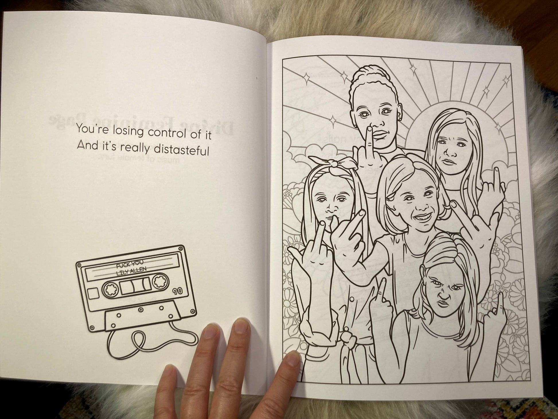 This advanced coloring book features twenty-eight original illustrations inspired by the music of female fury.